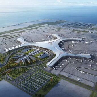 大连金州湾国际机场坐落于大连金州湾东部海域。作为国内首个离岸式“人工岛”机场,该机场占地面积达20平方公里,项目按照运行等级4F标准设计,计划建设4条跑道及90万平方米的航站楼,该机场建成后将成为世界最大离岸式“人工岛”机场。